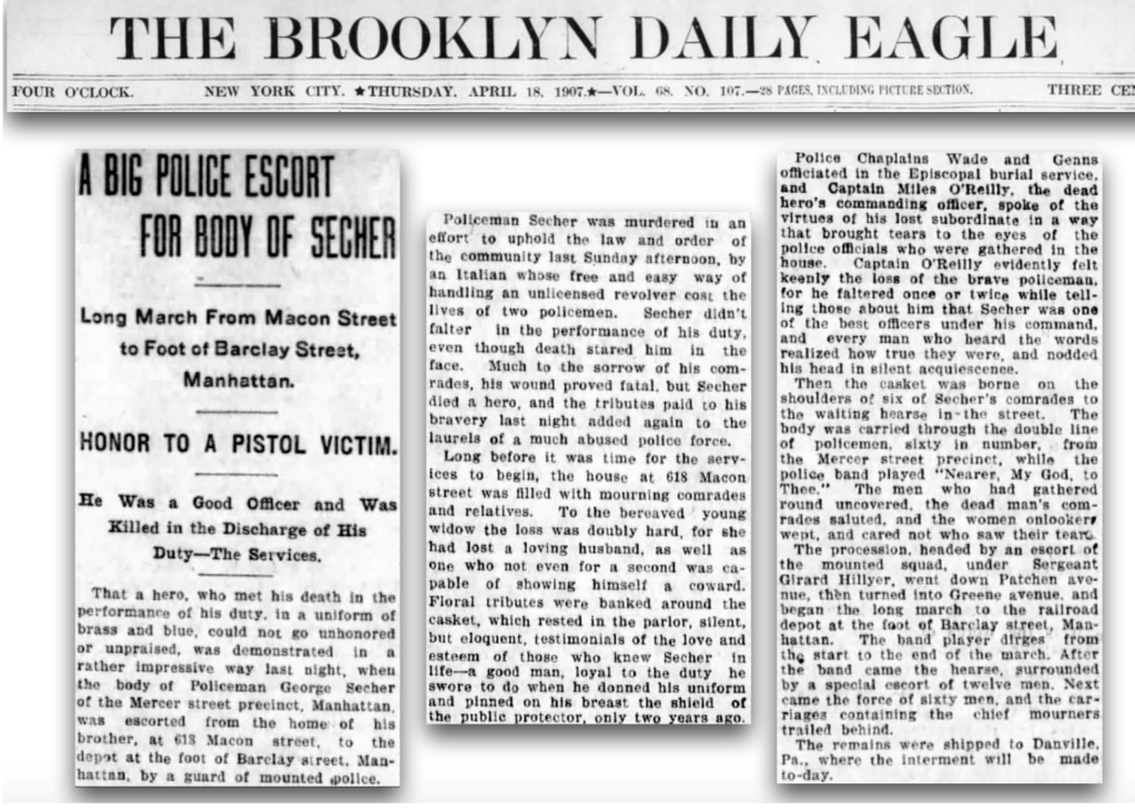 Wednesday April 17, 1907 was a day of honor and remembrance for George Mowrer Sechler of Danville throughout New York. On this day, the New York Times published the following editorial honoring George and his fellow officer Alfred Selleck: