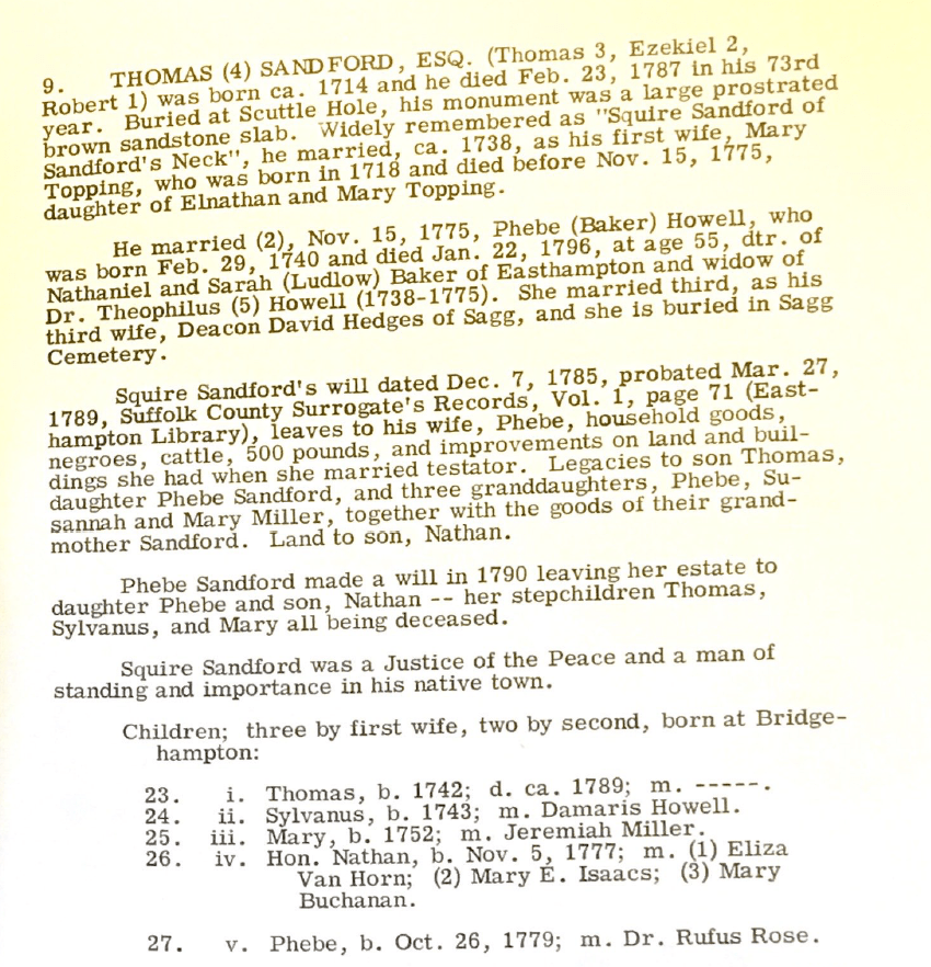- Thomas Sandford (2) Esq. (1715-1787) and Mary Topping (Bridgehampton)
