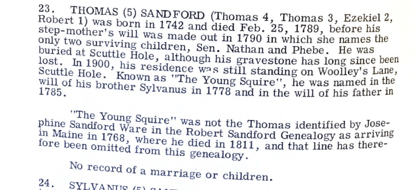 - Maybe Thomas (3a) came from another Bridgehampton Sandford family (descended from one of the Sandfords further up the chain)