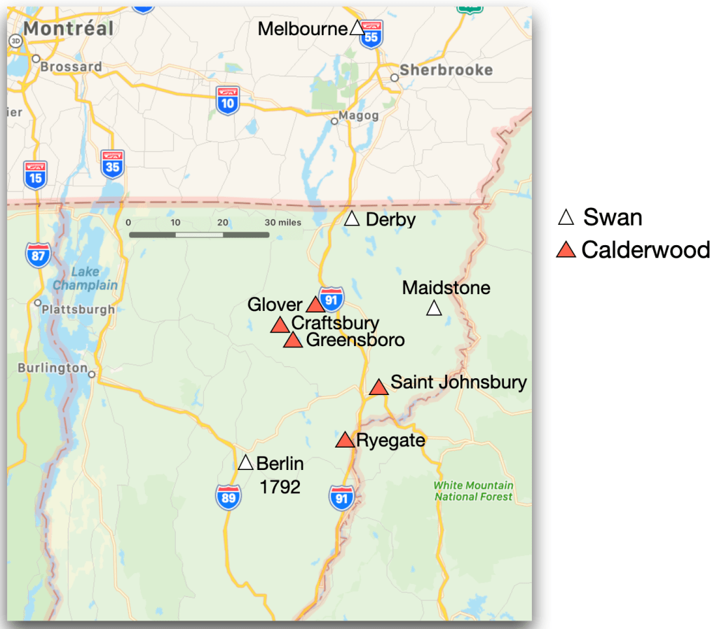 Both our Calderwood and Swan ancestors lived in the same small region in northern Vermont in the 19th century. This raises two questions: