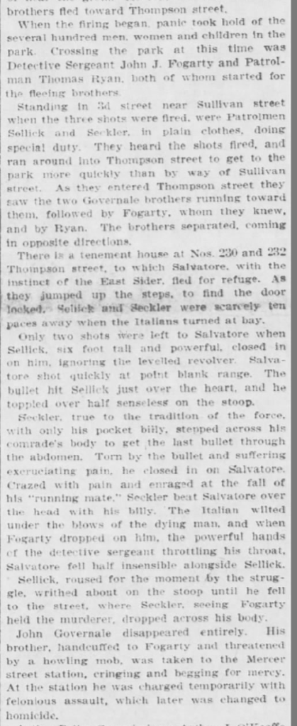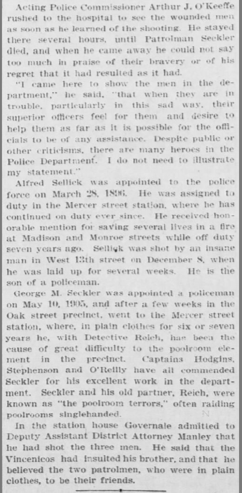 New York City has done a poor job preserving its early police department records. Many old records were destroyed around 1914 due to a combination of lack of storage space and political eagerness to clean house on some of the force’s darker eras. A police museum and archive was established on the South Manhattan waterfront in 1973, but was wiped out by Hurricane Sandy in 2012, with no prospects for its rebuilding on the horizon thus far. Today George’s name can be found in police archives documenting his hero status, but comprehensive records of even the names of ordinary New York policemen from that era may not exist.