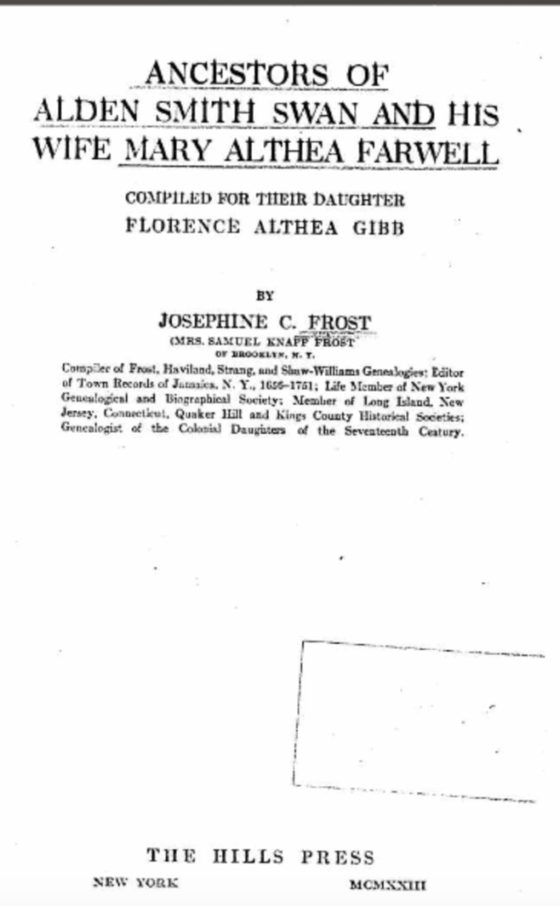 The Swan ancestry diagram also provides hints to another interesting branch of the Swan family. The name Ingalls appears twice–Sarah Ingalls was the wife of the first (Captain) Joshua Swan, and Mary Ingalls was the wife of the second Joshua. (This is not uncommon–there were not very many people in these early colonial settlements and there were often parallel families linked by multiple marriages since there weren’t very many choices of eligible partners. Other examples in our family history include recurring links between the Sandford, Howell, and Topping families in 17th and 18th century Long Island. This can, but does not necessarily, imply marriages between remote cousins.)