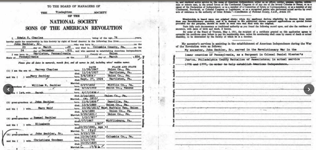 This may be a little overstated–John Sechler is a popular reference in DAR membership applications, which generally identify him as Sargent John Sechler, and don’t make any specific mention of direct service to George Washington.