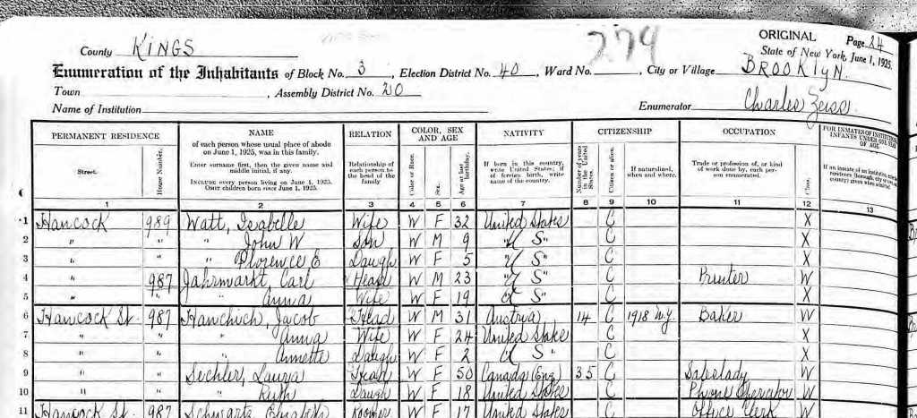 In 1925 the two lived at 987 Hancock Street, one block southwest of the Bushwick Avenue Baptist Church, the next convergence point in this branch of our family history. We will continue this part of the story in a future post.