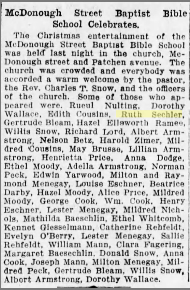 $23,000 in 1907 would be worth about $600,000 today. It was a significant amount of money but, divided over a 20 year period, would need to be supplemented to sustain the pair through Ruth’s childhood. Records show that they lived in at least four places through the late 1920’s, all in the same neighborhood. Census records generally list Laura as a “housekeeper” which may mean that she worked for other families, but it may just reflect the way to which women’s occupations were usually referred during that era.