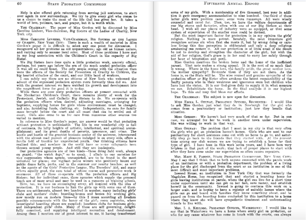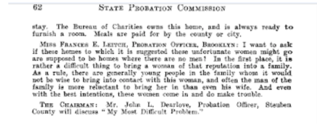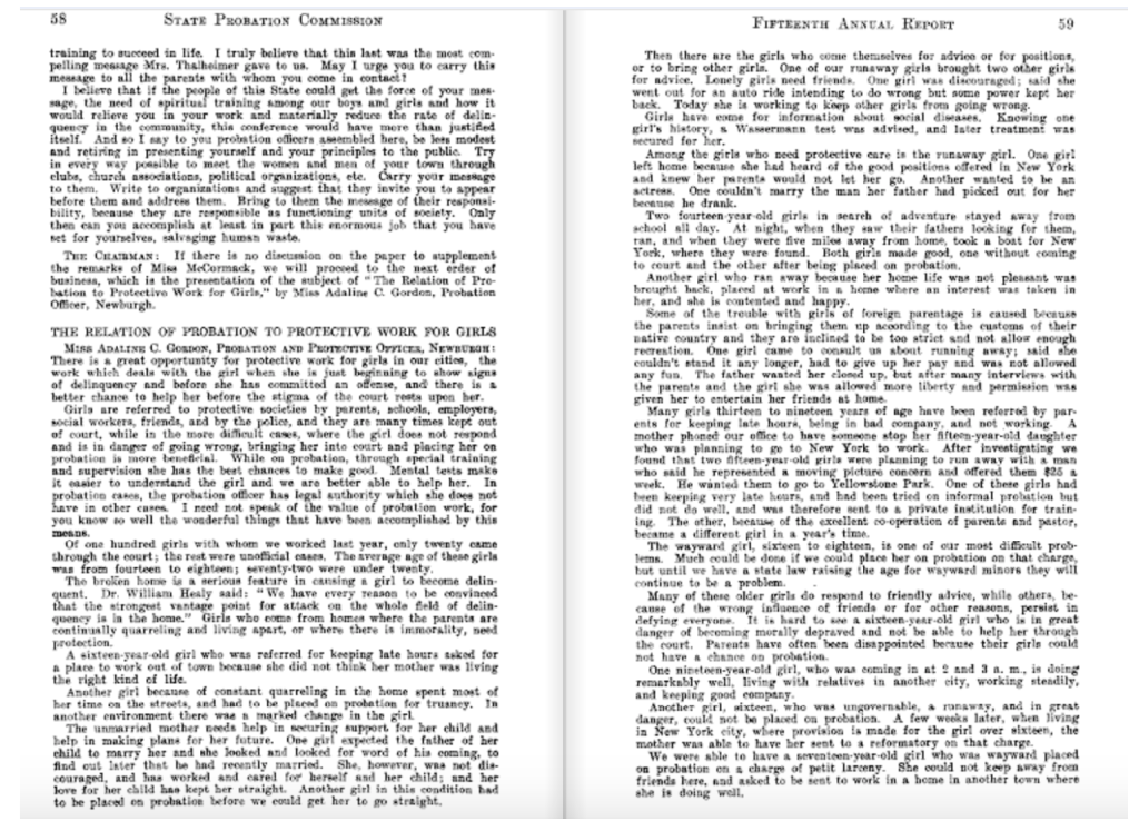 A 1921 publication of a transcript of a presentation Addie gave to the New York State Probation commission summarizes a paper she wrote on some of her findings in the field, and gives insights into her work.