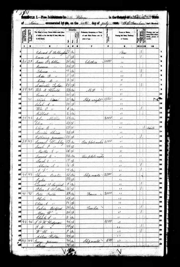 The 1850 Census indicates that Edward went to live with his grandparents, Thomas and Lydia Burton, when his mother Dorothy died.