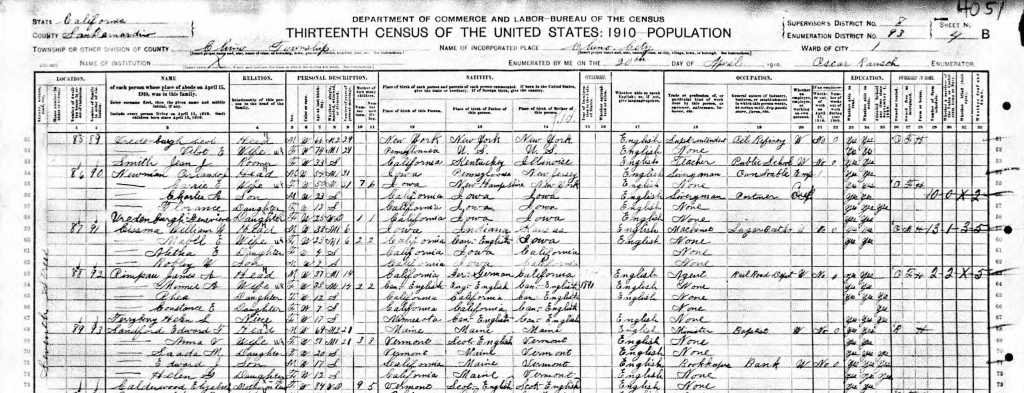 The family remained in Chino for about two years before settling in Ontario, I think by the end of 1910. At age 70, Edward fully retired and the family moved into the house at 541 East D Street.
