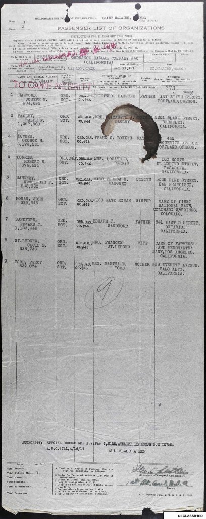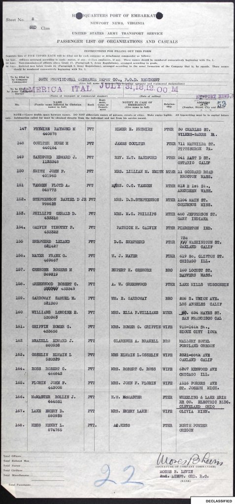 It was another year before Joe departed for France, shipping-off in July 1918 from Newport News, Virginia. Prior to this, he had spent time training in Augusta, Georgia.
