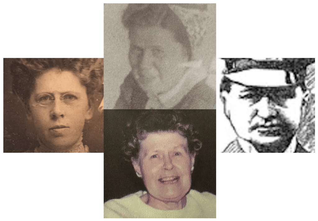 In particular, the square shape of Ruth’s face seems to come straight from her father, not apparent in the face of her mother. After seeing this, for me, the overall father/daughter resemblance becomes difficult not to see. George is there, in the grandmother we knew (and perhaps also in the face of our mother, who bears some resemblance to her mother).
