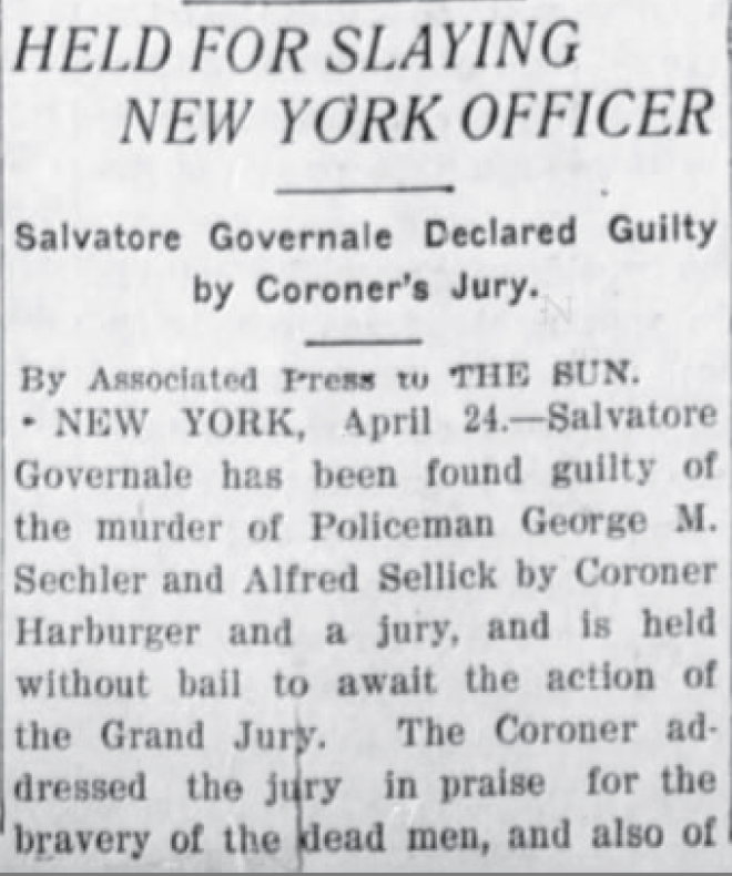 Had our mother met Mattie Swan, there is a small possibility that they could have figured out the connection with a story that Mattie might have read 44 years earlier in the San Bernardino County Sun. News of the death of our great grandfather George Sechler in Manhattan, and subsequent events, appeared nationwide.
