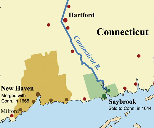 At first glance, the geography seems to work against us. Although today’s Interstate 91 links New Haven and Hartford directly, no such direct path existed in the water routes of the 17th century. New Haven is about 30 miles west of the mouth of the Connecticut River on the Long Island Sound, Hartford being more than 35 miles upriver. Supply ships traveling from Massachusetts likely went to one or the other, but not both. On a daily basis, the two colonies were far enough apart that there would be little or no interaction between them.