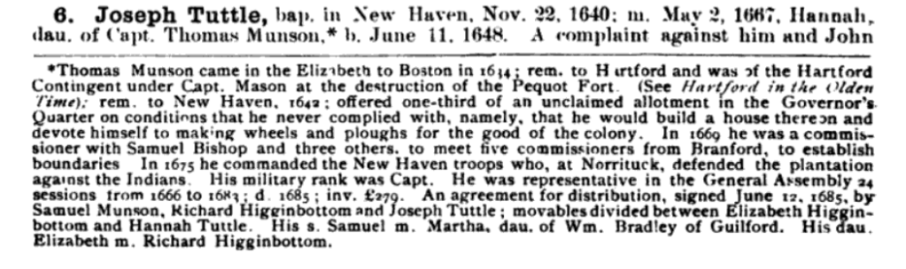 William Tuttle arrived in New Haven in 1638 to become a founding member of the community where our ancestors would remain for a half dozen generations before migrating west in the 19th century.