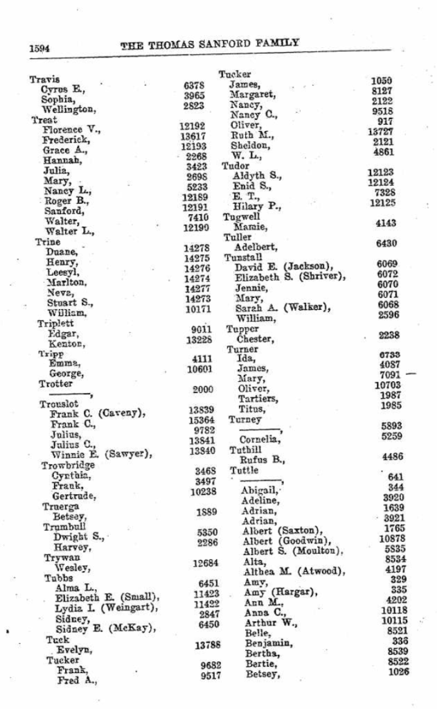 There are probably many other intersections between the Sandford and Tuttle families. Entries for the name “Tuttle” in the names index of Carlton Sanford’s genealogy run for more than a page.
