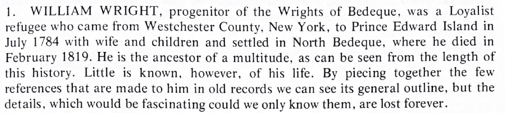 Family genealogist Doris Muncey Haslam surely tried to answer this question, but failed to come up with a definitive answer. Her summary of the life of fifth great grandfather William Wright takes us to the limit of what she was able to discover…