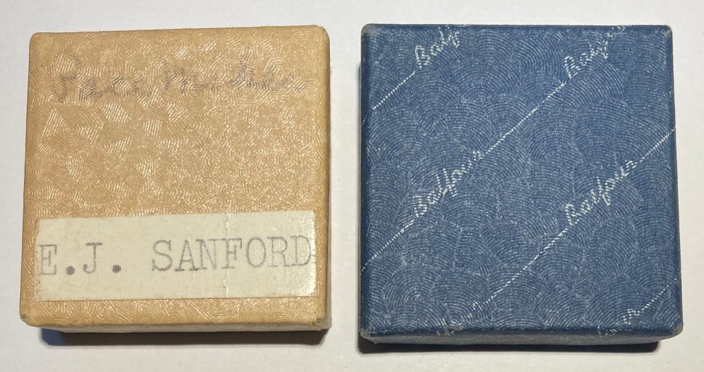 1907 United States $2.50 gold coin, given to me as a young child in the 1960s, which seems to match the description in Joe’s story. The coin is about the size of a dime. It has remained in this box since the gift was made. I do not know who labeled the box with the misspelled name.