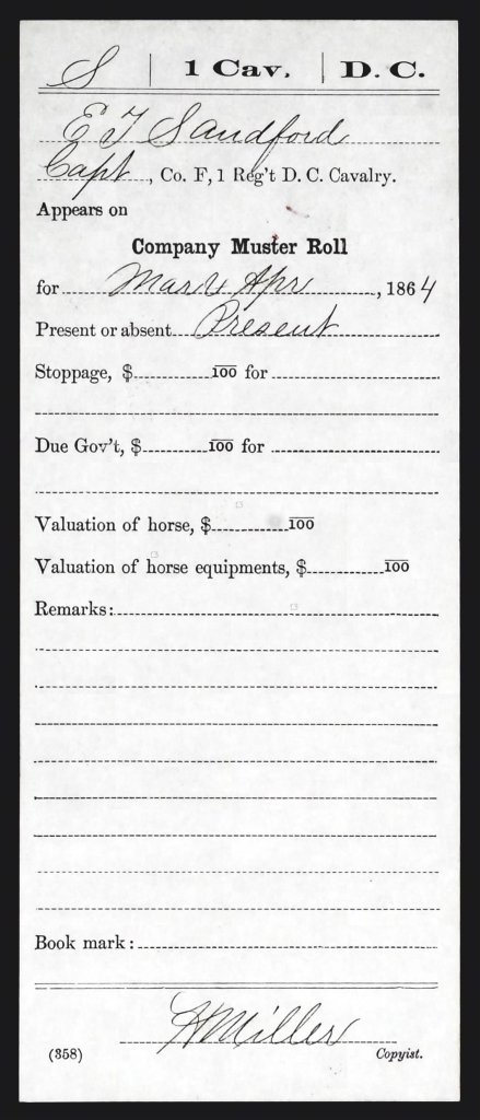 By January 1864, Edward, or his entire unit, had changed to the 1st Cavalry of the District of Columbia, for unknown reasons.
