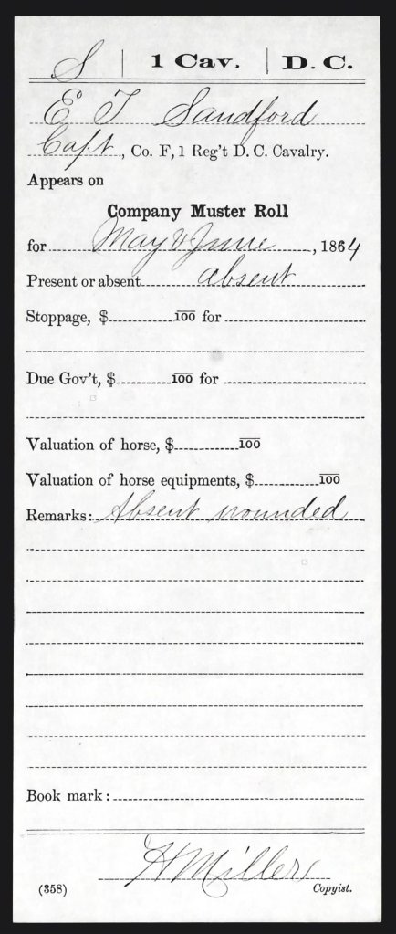 These letters remain the biggest missing piece in the puzzle of the Civil War story of Edward Sandford. I have no idea if they still exist–even a copy of the letters would indeed be valuable and it would be wonderful to find them. They would probably shed light on the specific actions undertaken by Edward and his command upon reaching Virginia.