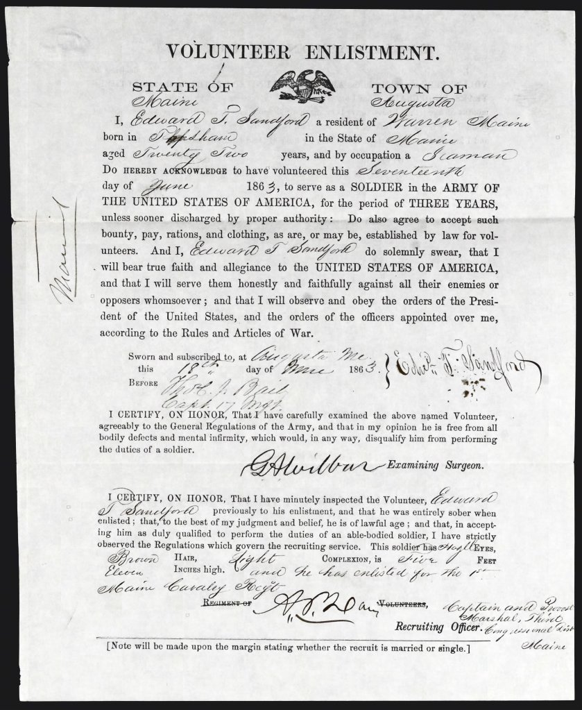 Edward Thomas Sandford’s enlistment in the Army, June 17, 1863.