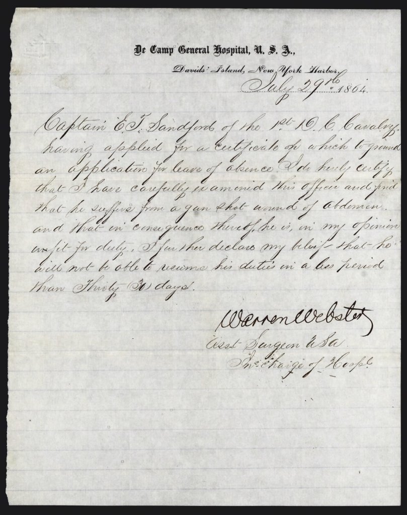 We should note that the type of wound Edward received in 1864 would be serious by today’s standards, even without the escape by horseback. His survival is nothing short of miraculous.